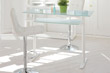 強化ガラス(飛散防止フィルム加工)を天板に使用、窓から差し込む日差しや照明のライトに照らされ眩しく輝くカウンターテーブルです。